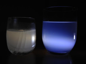 Esto lo podemos observar en casa añadiendo unas gotas de leche a un vaso de agua y comparándolo con otro donde hemos añadido harina. En el primero obtendremos la dispersión azulada de Rayleigh que vemos en el cielo y en el segundo la dispersión convencional que podemos observar en las nubes.